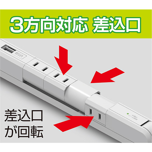 コードの付けが回転し、使用シーンに合わせてスッキリ配線できます。