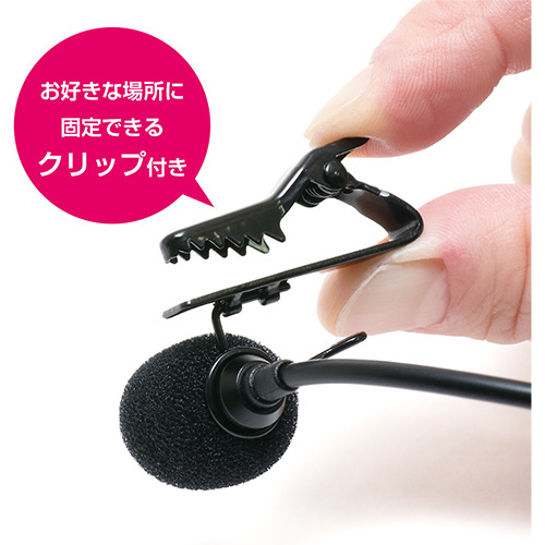 マイク部分についているケーブルクリップを使えばお好きな場所に固定できます。