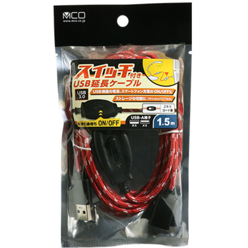 ミヨシ USB-EXS3015/RD スイッチ付きUSB延長ケーブル 1.5m レッド USBEXS3015/RD