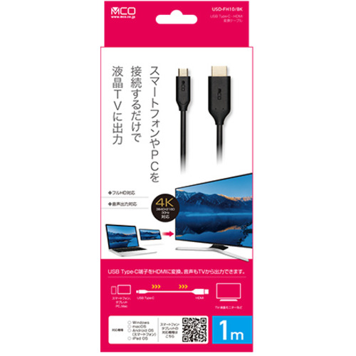 ミヨシ USD-FH10/BK USB Type-C HDMI変換ケーブル 1m ブラック USDFH10/BK