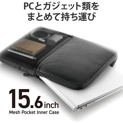 ●中身が見やすく整理がしやすいメッシュポケット付きのパソコンインナーケースです。