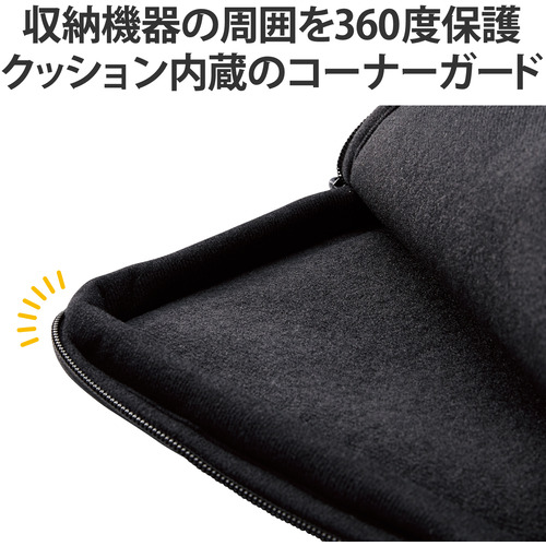 ●中身が見やすく収納物がしっかりと固定される、ハリのあるメッシュポケット付き!クッション内蔵のコーナーガードを備え、パソコン本体の保護もばっちりなパソコンインナーケースです。