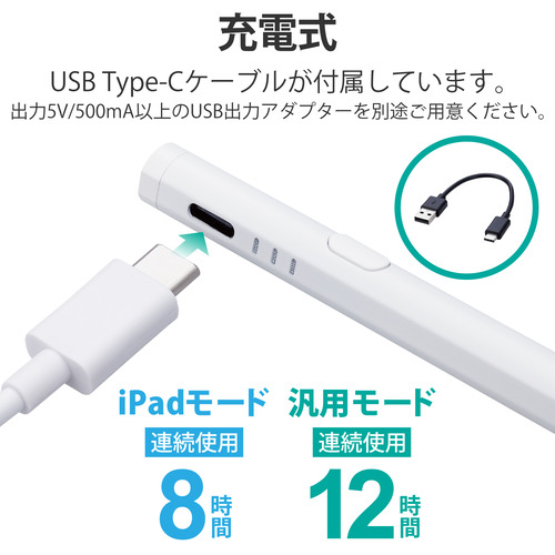 エレコム P-TPACSTHY01WH 充電式アクティブタッチペン ホワイト PTPACSTHY01WH