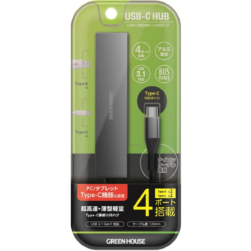 グリーンハウス GH-HB3C4A-SV USB3.1 Gen1対応 USB Type-C接続 4ポートUSBハブ シルバー GHHB3C4ASV