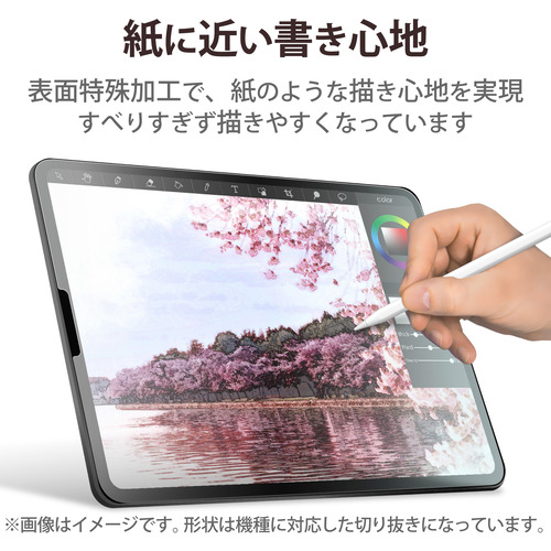 ●iPad 第10世代(2022年モデル)の液晶画面を傷や汚れから守る、指紋防止、反射防止タイプの紙心地フィルムです。特殊表面形状デザインにより上質紙に鉛筆で描いたような描き心地を実現します。