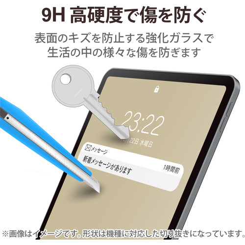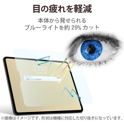 ●ガラスのように美しい透明感を実現!割れに強く、ガラスと同じ高硬度9Hの薄型、ブルーライトカットタイプのiPad 第10世代(2022年モデル)用液晶保護フィルムです。
