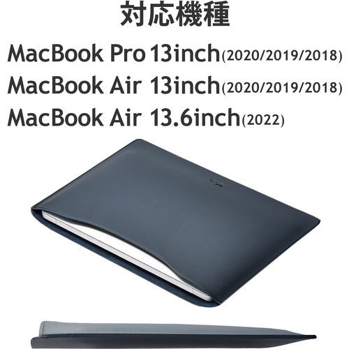 エレコム BM-IBSVM2213NV MacBook Pro / Air 13インチ 13.6インチ用 パソコンケース スリーブタイプ ソフトレザー ネイビー