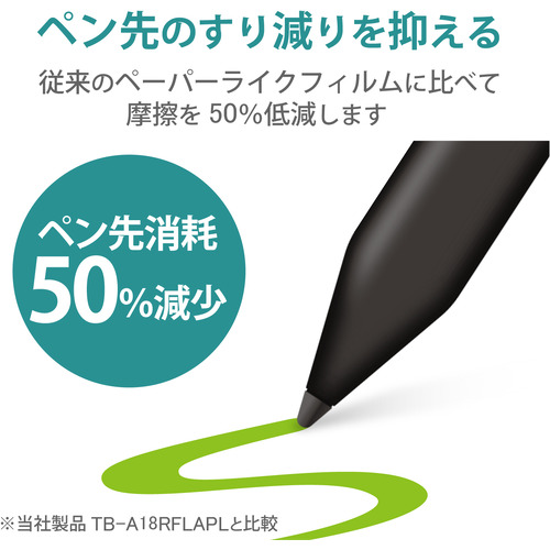 ●ペン先の磨耗を50%低減させるため、タッチペンを長く使用できます。 ※当社FLAPLとの比較
