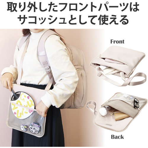 ●いつ、どんな時でも、大好きな“推し”と一緒に。サコッシュにもなる着脱式のフロントパーツによって「擬態モード」と「推し活モード」を切り替え可能!あなたと“推し”との日常を応援する、推しごとバックパック・Lサイズです。