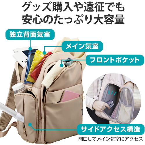 エレコム BM-OGBP02LGY 推しごとバックパック Lサイズ 大容量 ビジネス/推し活 2Way使用 グレージュ BMOGBP02LGY