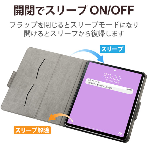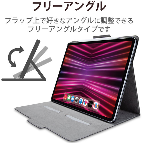 エレコム TB-A22PLWVFUBK iPad Pro 12.9インチ 第6世代 フラップケース ソフトレザー フリーアングル スリープ ブラック TBA22PLWVFUBK
