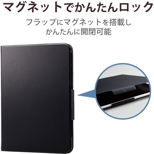 エレコム TB-A22RWVFUBK 10.9インチ iPad(第10世代)用 フラップケース ソフトレザー フリーアングル ブラック TBA22RWVFUBK