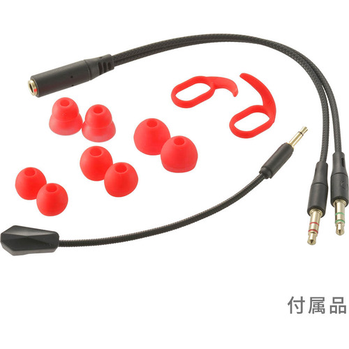付属品:変換アダプター(4極φ3.5mmステレオミニジャック⇔φ3.5マイク出力ミニプラグ+φ3.5mmステレオミニプラグ)、着脱式アームマイク、イヤーフック(本体に装着済み)、イヤーチップ(シングルS、M、L 各1セット、ダブル1セット…ダブルは本体装着済み)