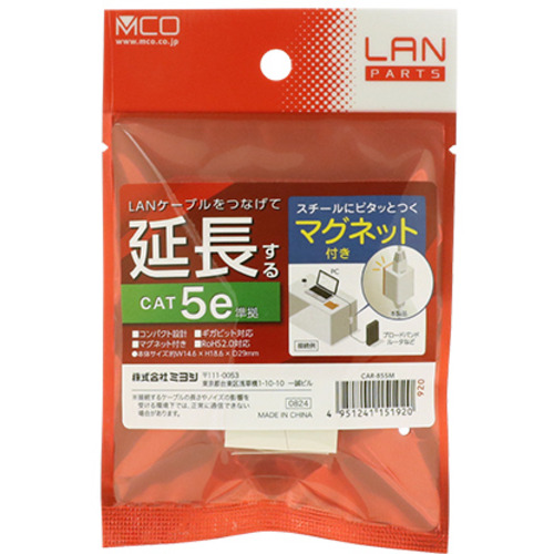ミヨシ CAR-855M マグネット付き LAN中継アダプタ カテゴリー5e対応 CAR855M