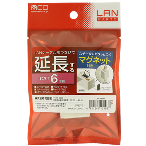 ミヨシ CAR-866M マグネット付き LAN中継アダプタ カテゴリー6対応 CAR866M