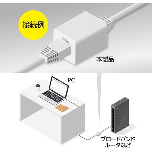 LANケーブルをつなげて延長できます。場所をとらず使いやすい超コンパクトタイプです。