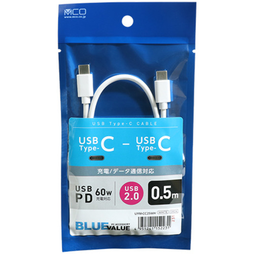 ミヨシ UYM-CC25WH USB2.0ケーブル USB PD 60W充電対応 充電/データ通信 Type-Cタイプ ホワイト UYMCC25WH
