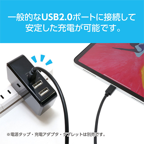 一般的なUSB2.0ポートに接続して安定した充電が可能です。