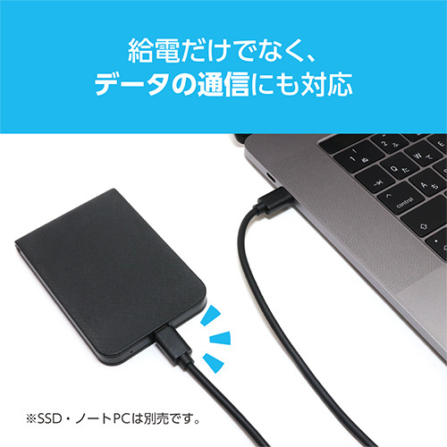給電だけでなく、データの通信にも対応。これ1本でUSB機器の充電、パソコンとのデータ通信など、幅広く使えます。