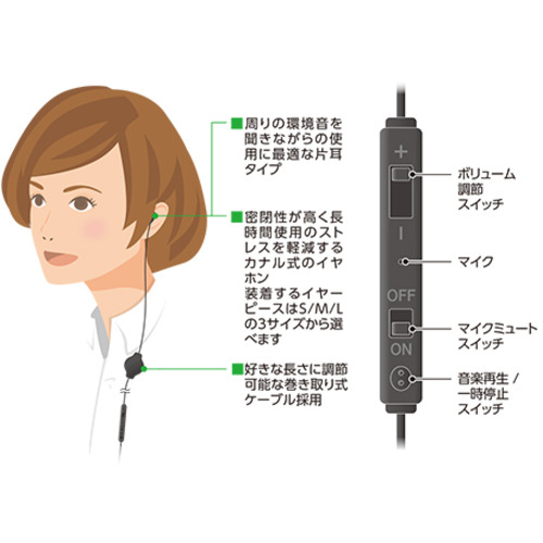 ●周囲の音を聞きながら使用できる片耳タイプ