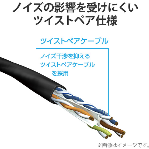 ●カテゴリー6の2倍である500MHzまでの高周波領域まで対応しており、ノイズ干渉にも強く、高速で安定したネットワーク環境を実現します。