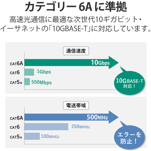 規格:Cat6A準拠(10GBASE-T/1000BASE-TX/1000BASE-T/100BASE-TX/10BASE-Tに対応)