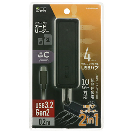 ミヨシ USH-10G2C/BK USBハブ USB3.2 Gen2対応 USB Type-C カードリーダー付 USH10G2C/BK