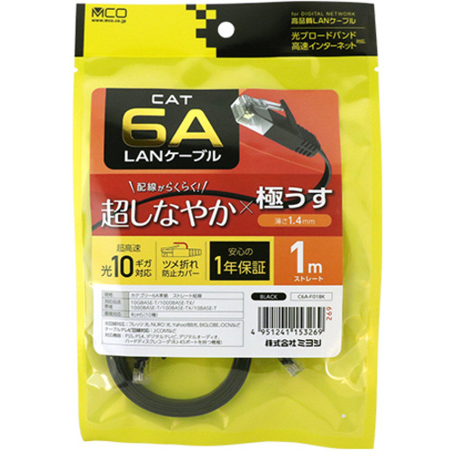 ミヨシ C6A-F01BK 極うすLANケーブル 1m ブラック C6AF01BK