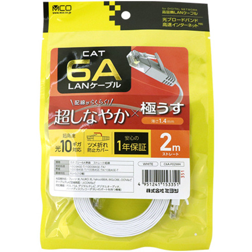 【推奨品】ミヨシ C6A-F02WH 極うすLANケーブル 2m ホワイト C6AF02WH