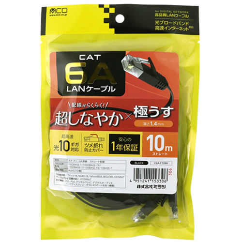 ミヨシ C6A-F10BK 極うすLANケーブル 10m ブラック C6AF10BK