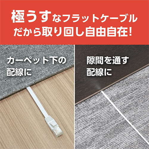 ●光ブロードバンドに最適な超高速10ギガ(10Gbps)対応LANケーブルカーペット下やドアの間への配線に最適な極薄うすタイプ