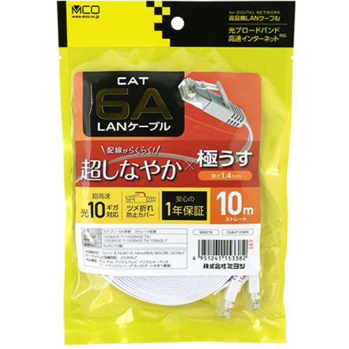 【推奨品】ミヨシ C6A-F10WH 極うすLANケーブル 10m ホワイト C6AF10WH