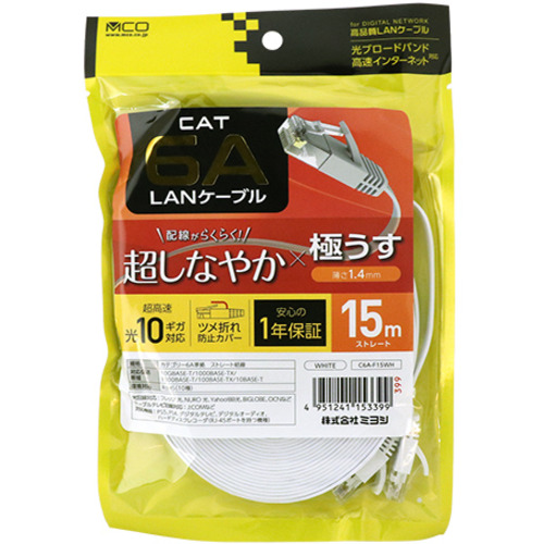【推奨品】ミヨシ C6A-F15WH 極うすLANケーブル 15m ホワイト C6AF15WH