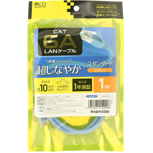 ミヨシ C6A-01BL スタンダードLANケーブル 1m 青 C6A01BL