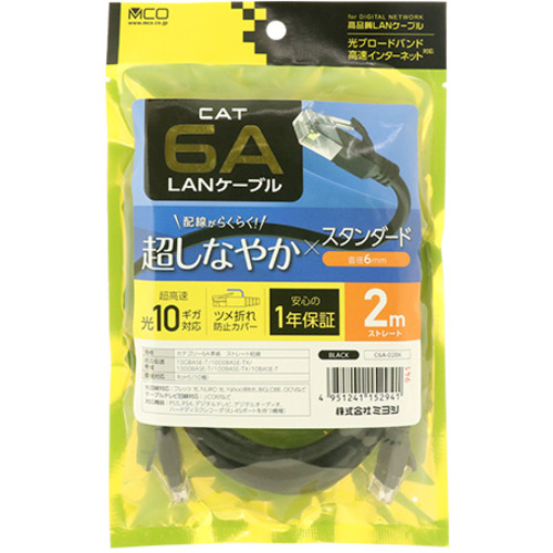 ミヨシ C6A-02BK スタンダードLANケーブル 2m 黒 C6A02BK