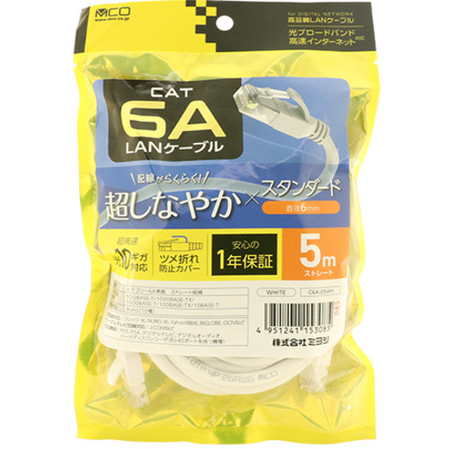 ミヨシ C6A-05WH スタンダードLANケーブル 5m 白 C6A05WH