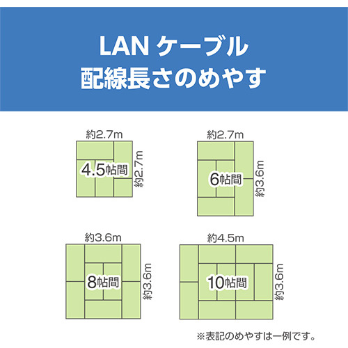 対応規格:カテゴリー6A(10GBASE-T),カテゴリー6(1000BASE-TX),カテゴリー5e(1000BASE-T),カテゴリー5(100BASE-TX),カテゴリー3(10BASE-T)