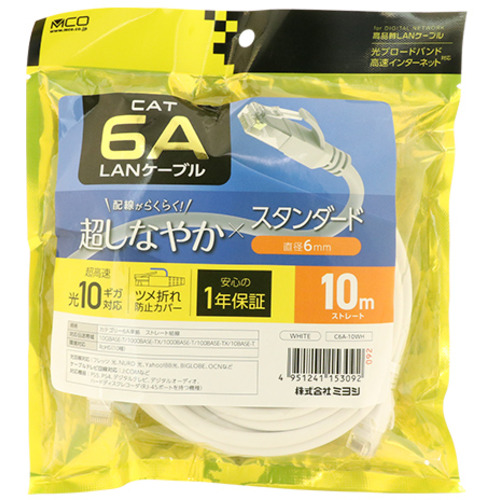 ミヨシ C6A-10WH スタンダードLANケーブル 10m 白 C6A10WH
