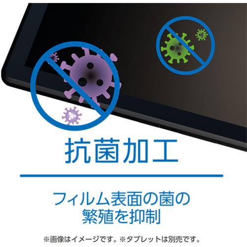 抗菌加工によりフィルム表面の菌の繁殖を抑えることができます。清潔な画面を保ちたい方におすすめです。※抗菌率99.9% / JIS Z2801 抗菌性試験方法による評価