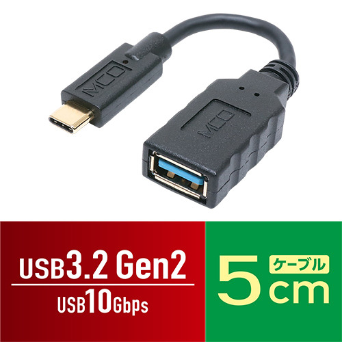 ミヨシ USA-10G2C/SS USB変換ケーブル USB A - USB Type-C 5cmケーブル付 USA10G2C/SS