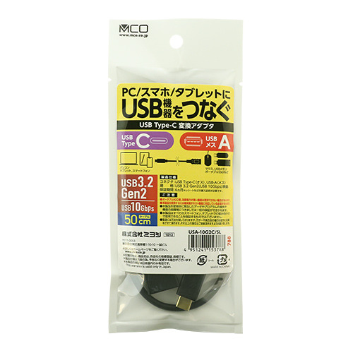 ミヨシ USA-10G2C/SL USB変換ケーブル USB A - USB Type-C 50cmケーブル付 USA10G2C/SL