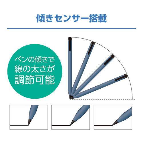 4段階の傾きセンサー搭載で、ペンの角度に合わせて線の太さが変わります。