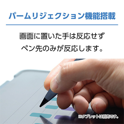 画面に置いた手には反応せず、ペン先のみが反応するパームリジェクション機能搭載のタッチペン。※アプリケーションによってはパームリジェクション機能を使用できない場合がございます。