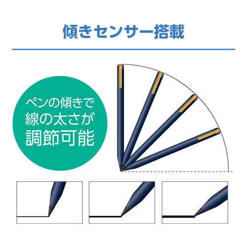 4段階の傾きセンサー搭載で、ペンの角度に合わせて線の太さが変わります。