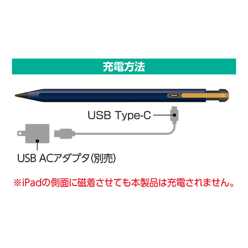 使わないときはiPadの側面にマグネットでピッタリくっつけておけるので邪魔になりません。※iPadの側面に磁着させても本製品は充電されません。