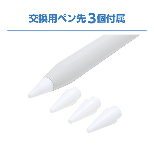 ペン先は交換可能。本体に1個取付済みで、交換用のペン先が3個付属しています。また、ペン先がやわらかいPOM素材なので画面などをキズが付けにくく安心です。ペン先のみを弊社HPからご購入いただくことも可能です。