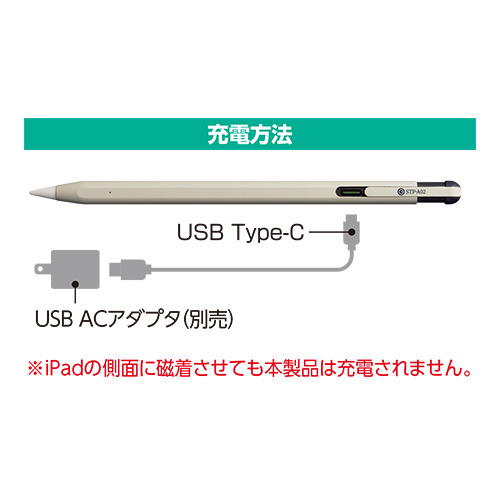 使わないときはiPadの側面にマグネットでピッタリくっつけておけるので邪魔になりません。※iPadの側面に磁着させても本製品は充電されません。