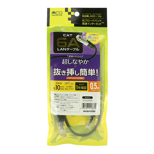 ミヨシ C6A-N005BK カテゴリー6A 抜きやすい LANケーブル 0.5m 黒 C6AN005BK