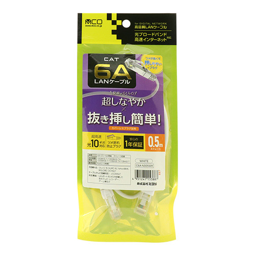 ミヨシ C6A-N005WH カテゴリー6A 抜きやすい LANケーブル 0.5m 白 C6AN005WH