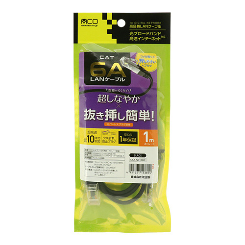 ミヨシ C6A-N010BK カテゴリー6A 抜きやすい LANケーブル 1m 黒 C6AN010BK